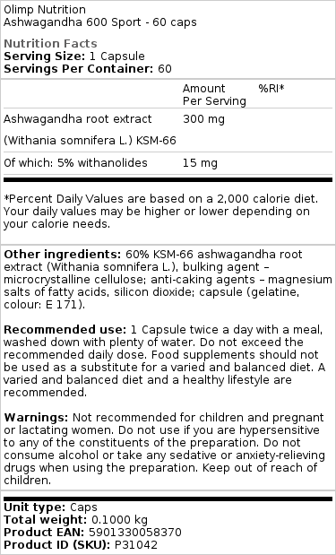 Olimp Nutrition – Ashwagandha 600 Sport