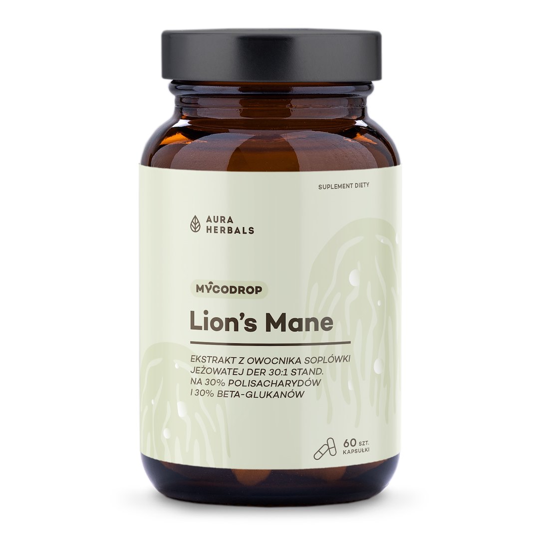 Nome do produto: AURA HERBALS Mycodrop, Lion’s Mane 30:1, 30% beta-glukan (60 caps)