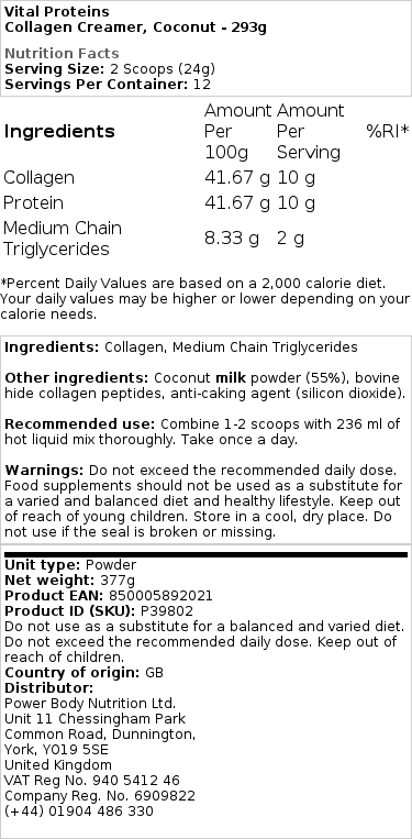 Nosso creme de colágeno de coco é uma adição saudável e deliciosa ao seu café da manhã. Ele tem gorduras saudáveis de leite de coco orgânico em pó, mais 10g de peptídeos de colágeno provenientes de bovinos alimentados com capim e criados em pastagem. Paleo Friendly e Whole30 Aprovado, nosso creme de coco é livre de laticínios, soja, carragena, glúten, adoçantes artificiais e adição de açúcares.