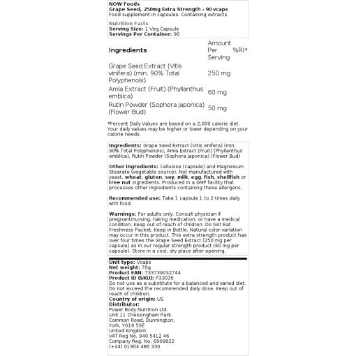 NOW Grape Seed Extract é um extrato natural altamente concentrado com um mínimo de 90% Polifenóis, incluindo Oligomeric Proanthocyanidins (OPCs), que são os potentes compostos hidrossolúveis de radicais livres encontrados nas Grape Seeds. Um corpo crescente de pesquisas indica que as OPCs de Sementes de Uva podem ajudar a apoiar a saúde vascular, óssea, renal, cerebral e outros tecidos, apoiando uma resposta imunológica saudável e equilibrada ao estresse oxidativo e metabólico.
