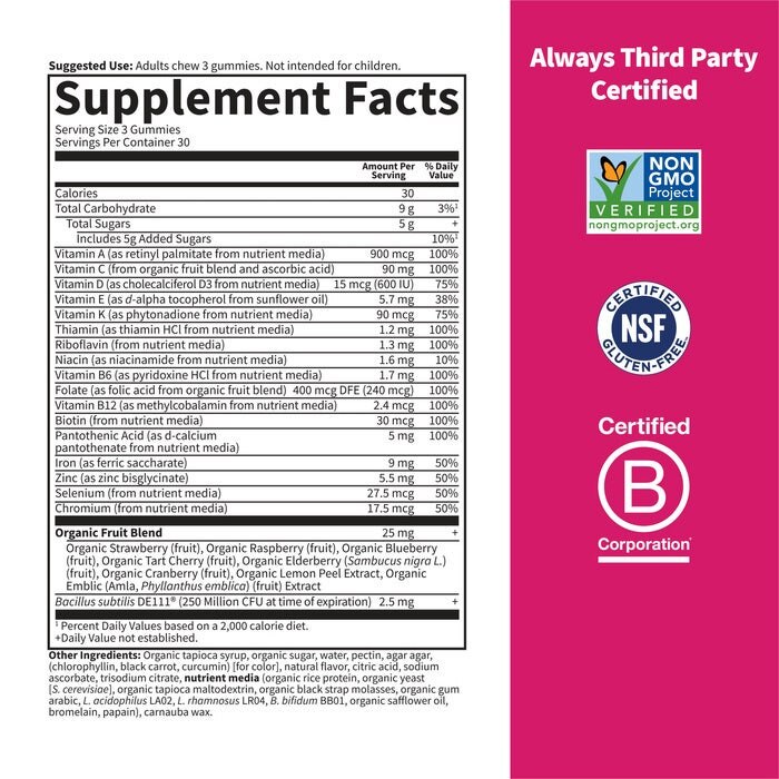 Além de fornecer nutrientes essenciais, as Vitamin Code Women’s Multi with Iron + Probiotics Gummies também oferecem benefícios exclusivos, como: