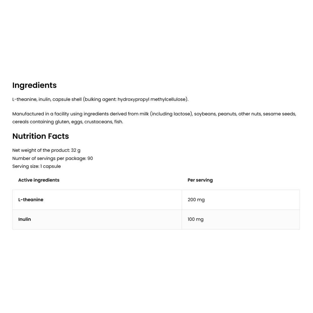 Ingredientes Principais: L-teanina, inulina. Cápsula: hidroxipropilmetilcelulose.