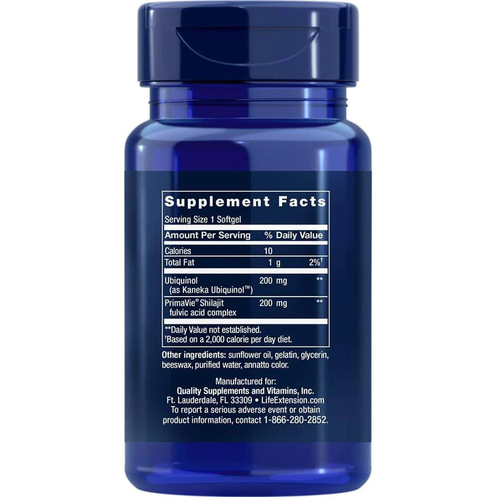 Contém ubiquinol CoQ10 ultra-absorvível aumentado com PrimaVie shilajit para promover a absorção da CoQ10 mitocondrial para suportar uma maior saída de energia celular
