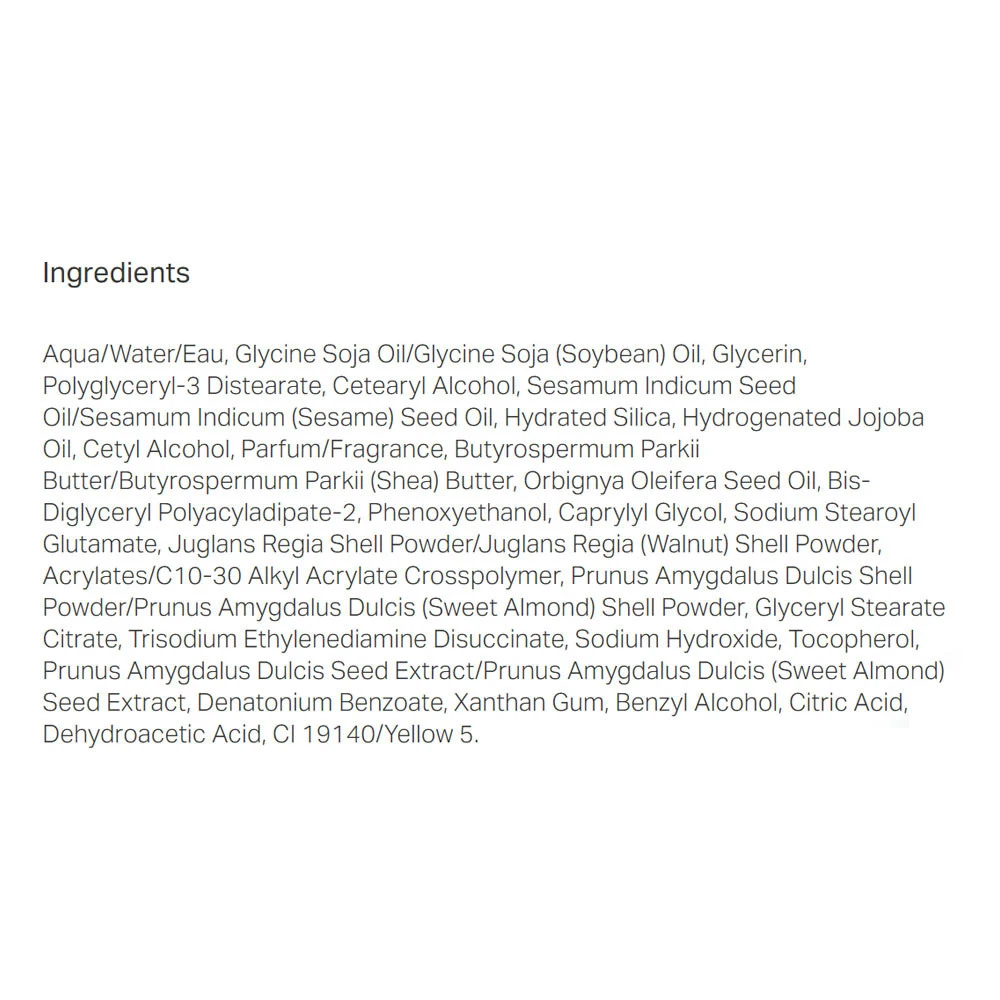 Ingredientes Principais: Este esfoliante é enriquecido com leite de amêndoa, conhecido pela sua suavidade e textura agradável. A composição inclui também outros componentes naturais que contribuem para a qualidade superior do produto.