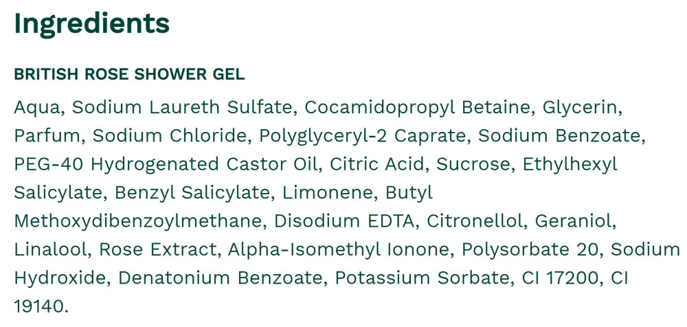Ingredientes Principais: Este gel de banho é enriquecido com a essência de rosas britânicas, conhecidas pela sua pureza e aroma naturalmente envolvente.