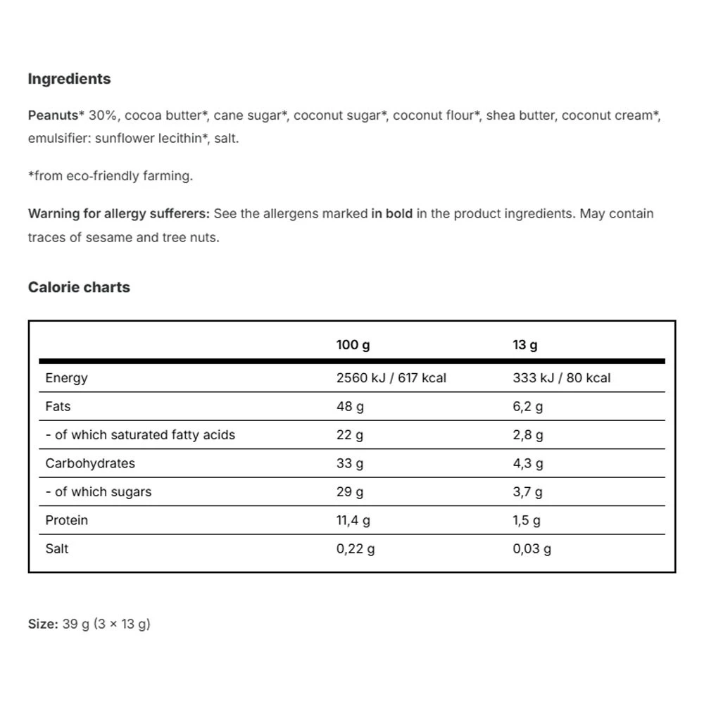 Ingredientes Principais: Manteiga de amendoim biológica, chocolate branco.